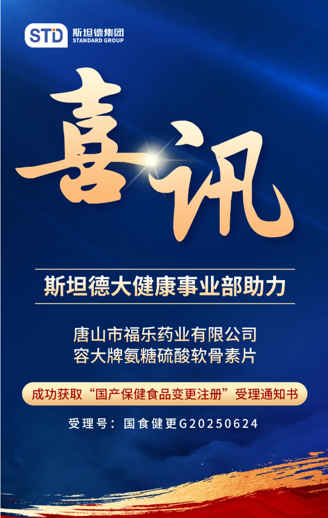 近日,国家市场监督管理总局依据《在产在售“无有效期和无产品技术要求” 保健食品集中换证审查要点》等现行法规,对唐山市福乐药业有限公司(以下简称 “福乐药业”)提交的“容大牌氨糖硫酸软骨素片”国产保健食品变更注册申请完成审查,正式出具《受理通知书》(受理号:国食健更G20250624)。