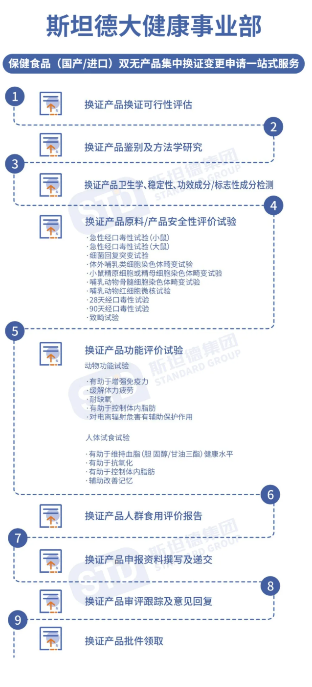 斯坦德大健康事业部以国家监管法规为核心导向,聚焦保健食品注册申报全流程需求,为福乐药业提供保健食品产品检测、动物试验、人体试食试验、注册申报等“双无”换证一站式服务,逐项拆解法规条款、全面梳理历史资料、标准化整理换证申报资料,助力企业成功获取国产保健食品变更(换证)注册受理通知书,抢抓“双无”换证窗口期。